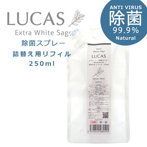 ハーブ除菌スプレー(除菌率99.9% 天然成分100%) LUCAS ルカス 【詰替え用 リフィル 250ml】| マスクスプレー アルコール 手 ウィルス対策 アンチウイルス 細菌対策 花粉 抗菌 予防 感染防止 携帯用 日本製
