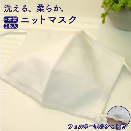 [即納] 洗える 、柔らか。 ニットマスク 【2枚】 日本製 (内側ポケット付き)| 普通 小さめ 白 大人用 男性用 女性用 布マスク ニット マスク おしゃれ かわいい 雑貨 ウイルス 花粉 対策